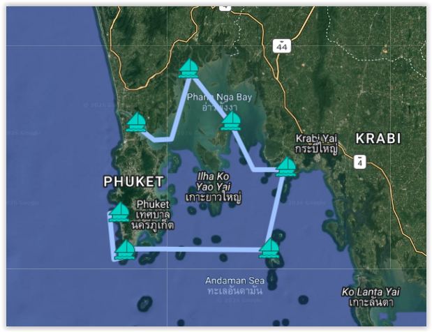 The journey begins and ends in Phuket, with each week offering a different itinerary—perfect for combining into a two-week sailing experience. This particular week starts in Patong and concludes at Yacht Haven Marina in northern Phuket, close to the airport.